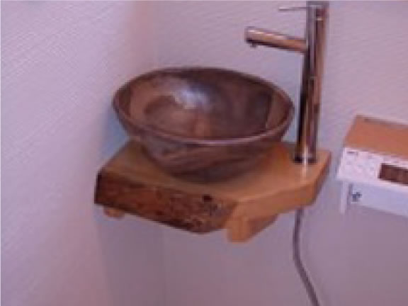 陶器の洗面ボールと木の台座を組み合わせ