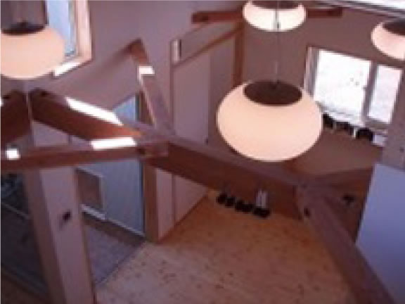 吹き抜けには安らぎの照明
